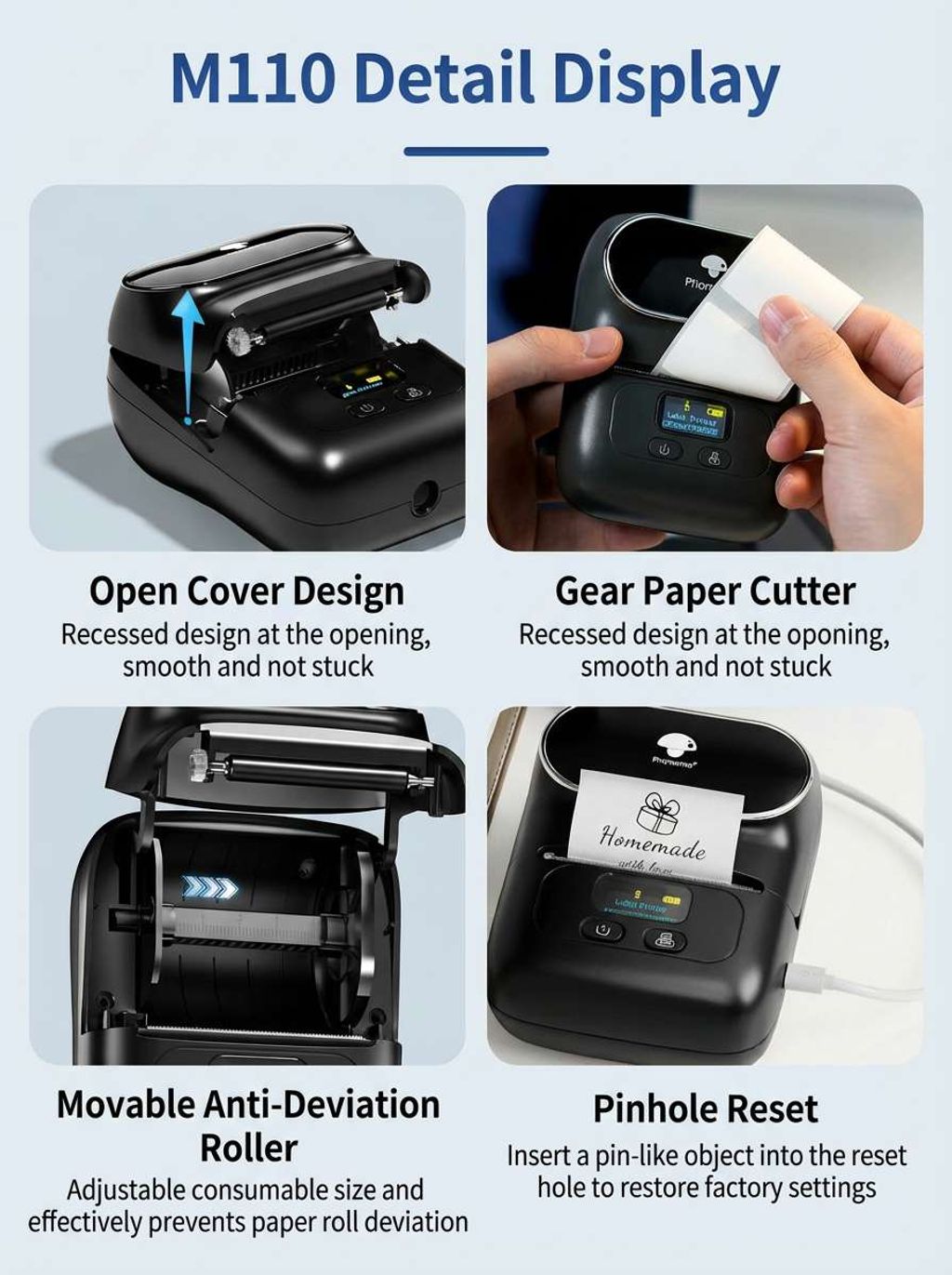 Why Choose Phomemo? We understand that time is your most valuable asset. That’s why we’ve optimized the printing process—no alignment issues, no ink clogs, just smooth, high-speed 203DPI printing. The sleek, ergonomic design feels premium in your hand, while the robust App gives you total creative freedom.