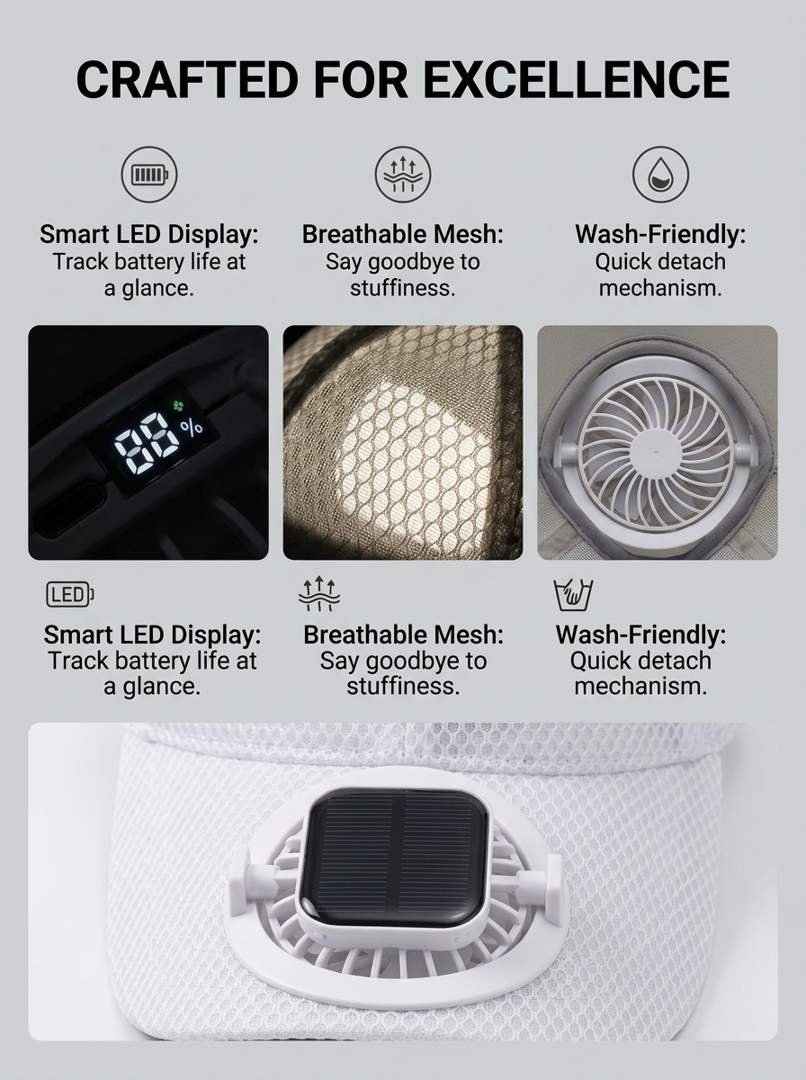 - Wash-Friendly Design: Hygiene made easy. The fan module features a quick-detach mechanism, allowing you to wash the cap and keep it fresh after every adventure.